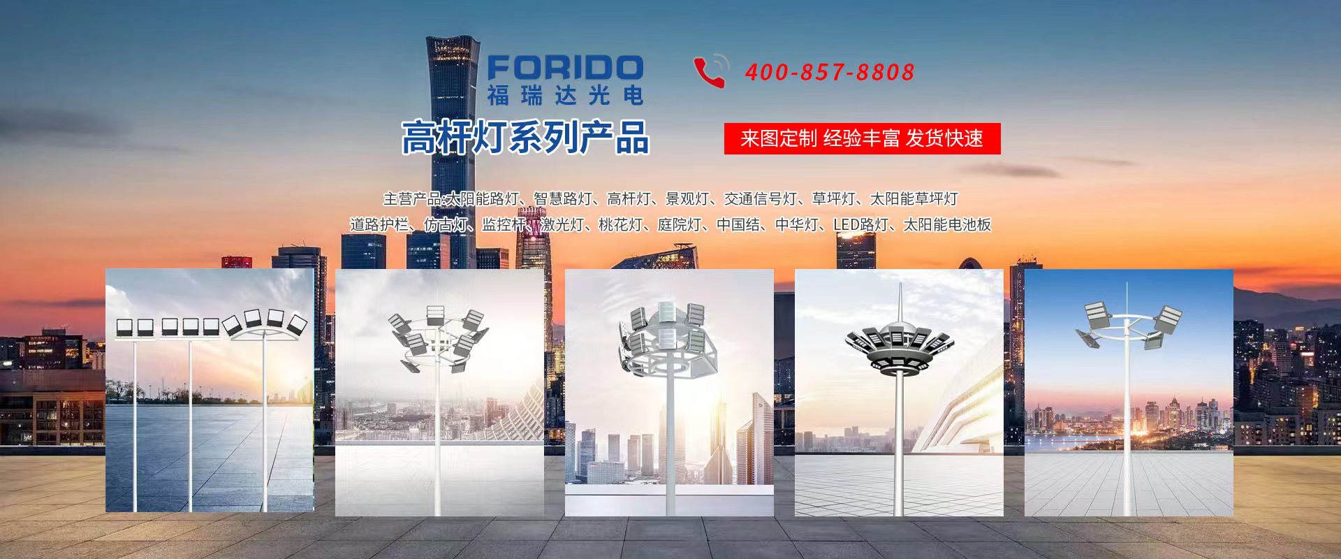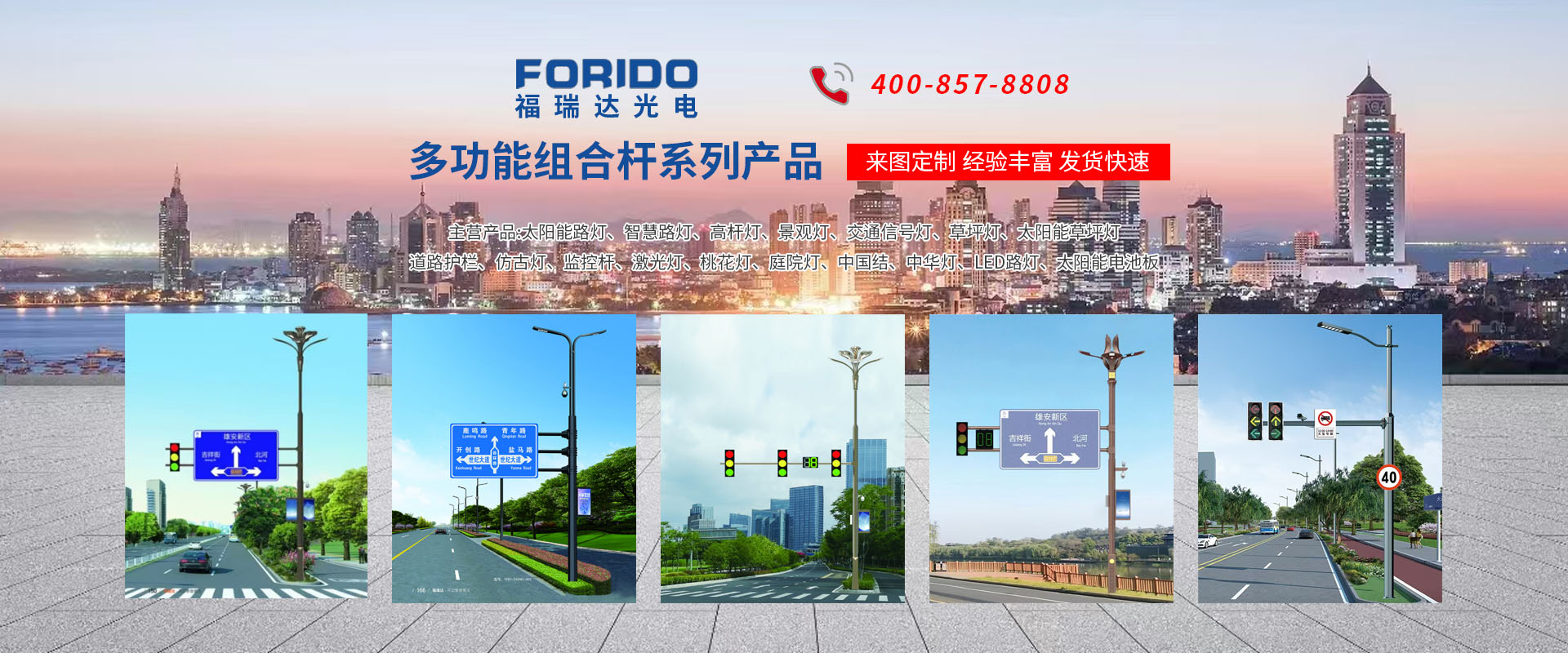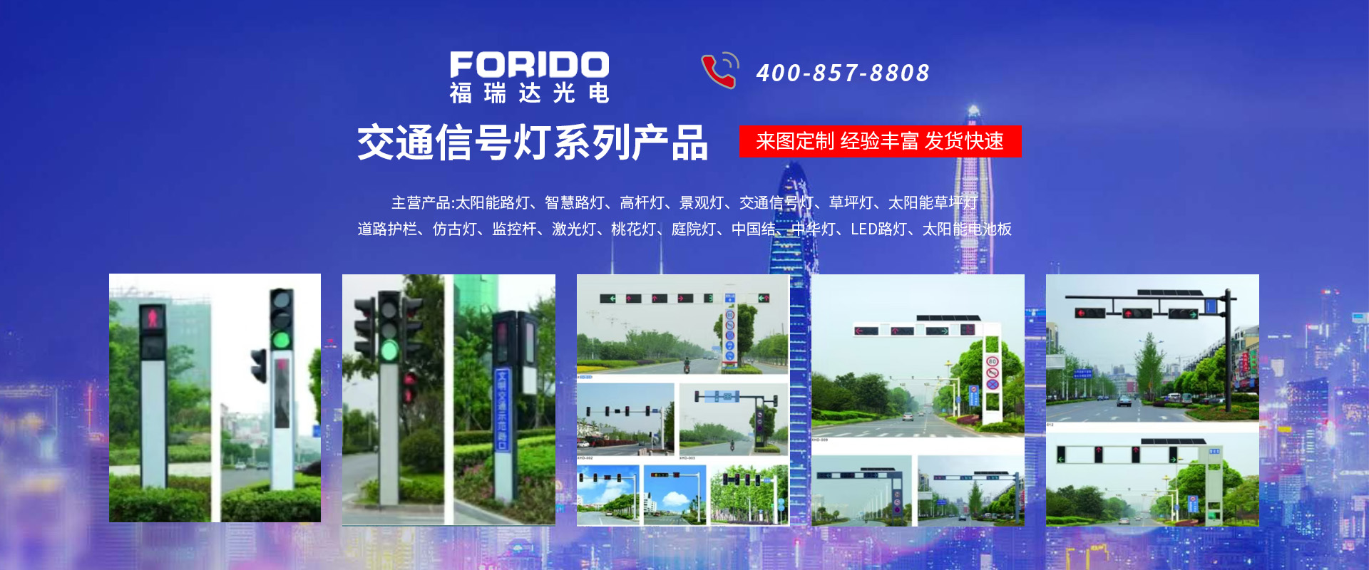 揚(yáng)州福瑞達(dá)光電科技有限公司位于淮左名都?xì)v史文化名城、中國路燈制造基地?fù)P州市北郊菱塘工業(yè)園,公司占地面積76000平方米,注冊資金10518萬元,擁有高級技術(shù)嫻熟的員工280多人,擁有大型折彎機(jī)、激光切割、數(shù)控注塑機(jī)、壓鑄機(jī)、自動(dòng)埋弧焊、氣焊、彩色粉末靜電噴塑等大型自動(dòng)化設(shè)備,我公司是一家集設(shè)計(jì)、研發(fā)、生產(chǎn)、銷售、施工安裝服務(wù)為一體的戶外交通照明產(chǎn)品制造商,主要生產(chǎn)智慧路燈、太陽能路燈、LED路燈、高桿燈、景觀燈、交通信號燈、交通標(biāo)志牌、通信鐵塔、路跨鋼結(jié)構(gòu)、公交站臺、太陽能光伏組件、景點(diǎn)亮化、樓宇亮化工程的設(shè)計(jì)施工等。公司秉承開拓創(chuàng)新、銳意進(jìn)取、精誠服務(wù)的企業(yè)精神,堅(jiān)持以“誠信為本、技術(shù)為先、服務(wù)是金”的合作理念,我們憑借先進(jìn)的制造工藝、優(yōu)質(zhì)的產(chǎn)品質(zhì)量、合理的市場價(jià)格和完善的售后服務(wù)贏得了廣闊的市場和客戶的信賴。  我公司已通過ISO9001質(zhì)量體系認(rèn)證、ISO14001環(huán)境管理體認(rèn)證,CQC產(chǎn)品認(rèn)證,中國節(jié)能產(chǎn)品認(rèn)證,通過“CCC”強(qiáng)制性產(chǎn)品認(rèn)證,具有市政總承包,照明,交安,設(shè)計(jì)等資質(zhì)···
